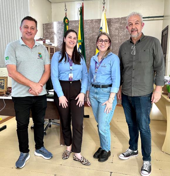 No dia 26 de setembro, o prefeito de Três Passos, Arlei Tomazoni, acompanhado do secretário municipal de Desenvolvimento e Inovação, Carton Cardoso, recebeu na Prefeitura as agentes de crédito Viviane Cristina Rockembach e Vanessa Costa, da Imembuí Microfinanças.