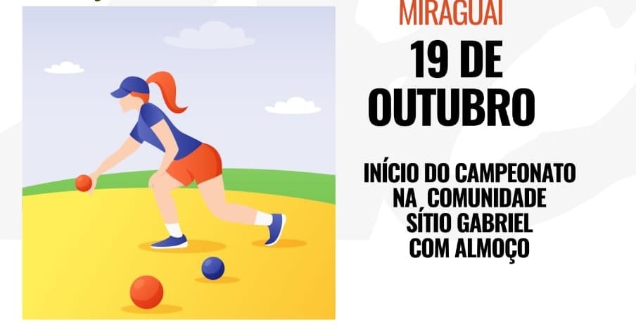 A Administração Municipal, por meio da Secretaria Municipal de Esportes de Miraguaí, vai dar início no dia 19 de outubro, ao Primeiro Campeonato Municipal de Bocha Feminino.
