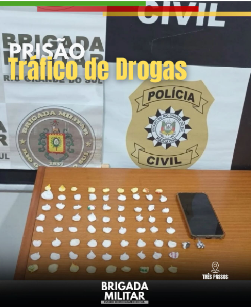 BRIGADA MILITAR EM AÇÃO CONJUNTA COM A POLÍCIA CIVIL, REALIZAM PRISÃO POR TRÁFICO DE DROGAS EM TRÊS PASSOS