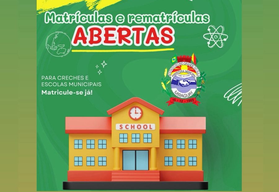 A Secretaria Municipal de Educação e Cultura de Miraguaí, abriu o período das inscrições para matrículas e rematrículas em toda a rede municipal de ensino para o ano letivo de 2026.