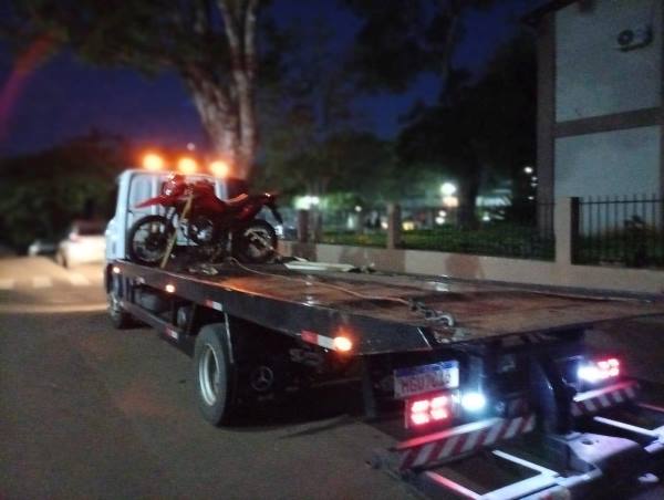 Próximo as 19 horas desta quinta-feira (6), a Guarnição da BM avistou o motociclista empinando uma moto vermelha e o condutor foi abordado.