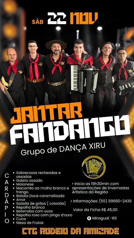 JANTAR FANDANGO DO GRUPO DE DANÇA XIRU DO CTG RODEIO DA AMIZADE