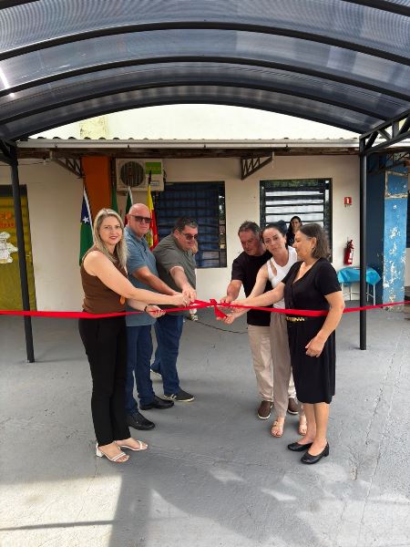 A Escola Municipal de Ensino Infantil – EMEI Lenirinha de Miraguaí, inaugurou na manhã desta segunda-feira, dia primeiro, um toldo para auxiliar à entrada de alunos.