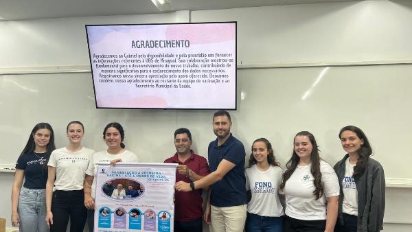 Entre os presentes, a participação do Secretário Municipal de Saúde de Miraguaí, Valdelírio Pretto da Silva e o colaborador da sala de vacinas, Gabriel Morcelli, que acompanharam as apresentações dos projetos, sendo um deles, “Da Gestação à Primeira Vacina – Até 6 Meses de Vida” – das acadêmicas: Camile de Almeida, Emili Pletsc, Bruna Baiotto, Amanda da Silva, Cintia Flores, Julia Freese, desenvolvido em parceria com a Sala de Vacinas de Miraguaí. O desafio do Projeto Integrador – PI, foi: Avaliação de indicadores de saúde e planejamento de estratégias para ampliar a cobertura vacinal na atenção à saúde.