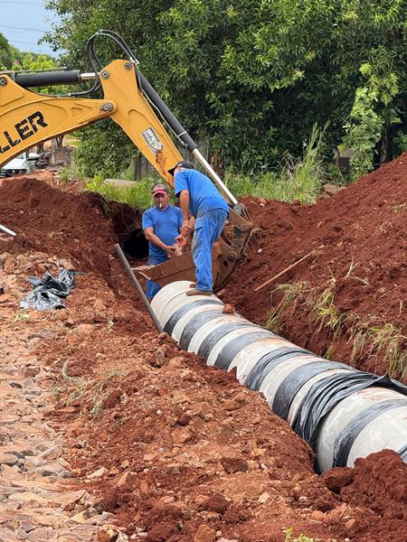 Entre os destaques está o conjunto de obras nas ruas Mizilaw e Dom Pedro, que vêm recebendo melhorias há vários dias. No local, estão sendo realizados serviços estruturais importantes, como a substituição e instalação de novos tubos de maior bitola, medida fundamental para melhorar a drenagem e evitar problemas futuros, especialmente em períodos de chuvas intensas.