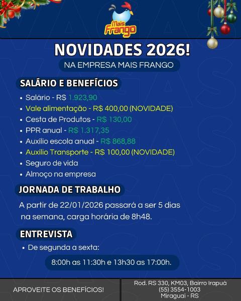 NOVIDADES EM VAGAS DE EMPREGO NA MAIS FRANGO