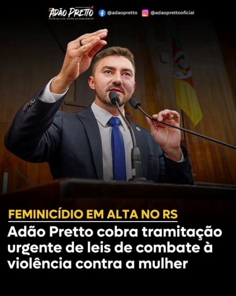 DEPUTADO ADÃO PRETTO FILHO VAI PEDIR URGÊNCIA PARA PROJETOS APÓS ALTA DOS FEMINICÍDIOS