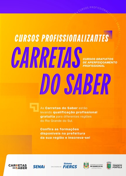Tenente Portela passa a contar com cursos profissionalizantes gratuitos por meio do Programa Carretas do Saber, iniciativa voltada à qualificação da população e à ampliação das oportunidades no mercado de trabalho. A ação é realizada pelo SENAI, em parceria com o Sistema FIERGS, o Governo do Estado do Rio Grande do Sul e a Prefeitura de Tenente Portela, por meio da Secretaria de Desenvolvimento Econômico e Turismo.