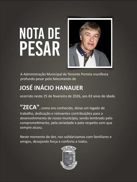 Em nota a Administração Municipal de Tenente Portela, manifesta profundo pesar pelo falecimento de José Inácio Hanauer.