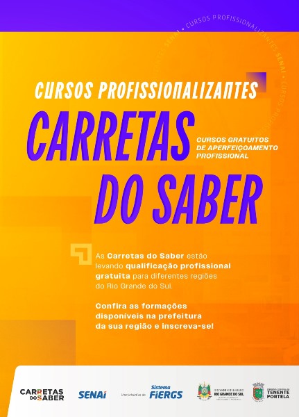 Tenente Portela passa a contar com cursos profissionalizantes gratuitos por meio do Programa Carretas do Saber, iniciativa voltada à qualificação da população e à ampliação das oportunidades no mercado de trabalho. A ação é realizada pelo SENAI, em parceria com o Sistema FIERGS, o Governo do Estado do Rio Grande do Sul e a Prefeitura de Tenente Portela, por meio da Secretaria de Desenvolvimento Econômico e Turismo.