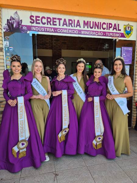 A presidente da 18ª FEICAP, Beatriz Vargas, o coordenador da Comissão de Comunicação e Marketing Carton Cardoso e as soberanas estiveram em Ametista do Sul no dia 21 de março, participando da Expopedras — Feira Internacional da Pedra Ametista.