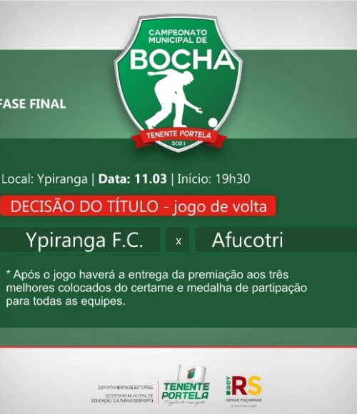 TENENTE PORTELA: YPIRANGA E AFUCOTRI DISPUTAM A FINAL DO MUNICIPAL DE BOCHA