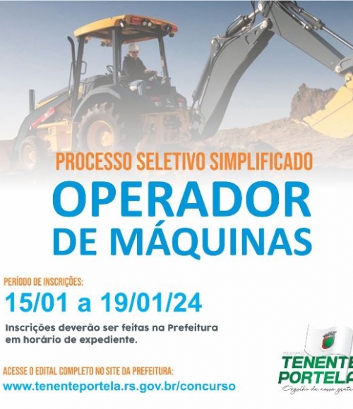 TENENTE PORTE ABRE PROCESSO SELETIVO PARA CONTRATAÇÃO DE OPERADOR DE MÁQUINA - CADASTRO RESERVA
