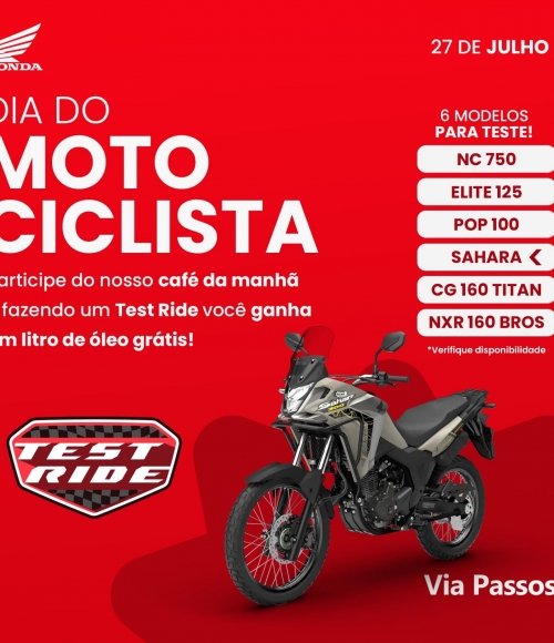 PARTICIPE DO DIA DO MOTOCICLISTA NESTE SÁBADO, DIA 27 DE JULHO
