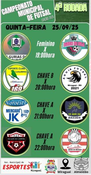 QUARTA RODADA DO CAMPEONATO DE FUTSAL DE MIRAGUAI