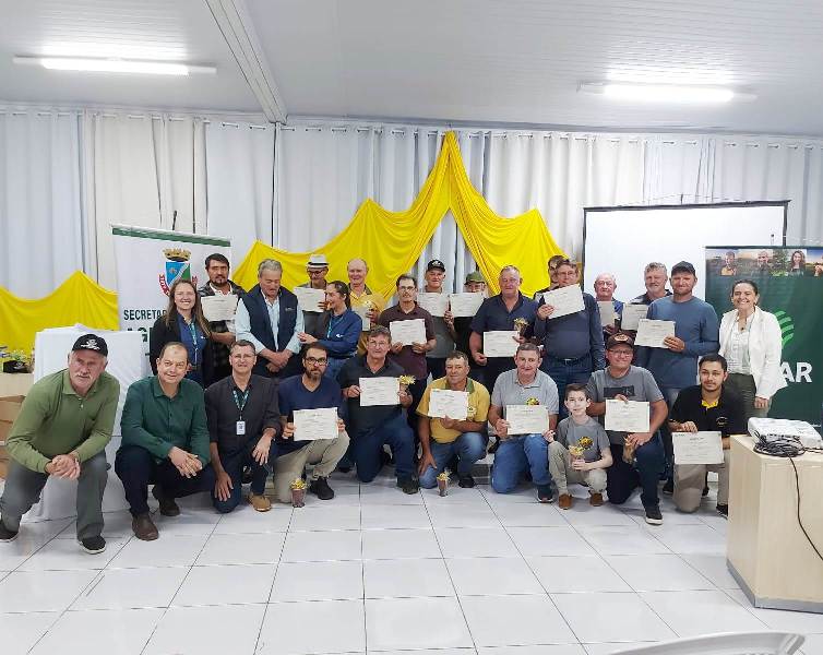 No turno da tarde, ocorreu a formatura da primeira turma do ATeG Apicultura, com 28 alunos concluintes após três anos de formação. A médica veterinária Diane Pes apresentou os resultados de produção e produtividade dos participantes, e o supervisor regional do Senar-RS, Diego Coimbra, destacou a importância das parcerias no fortalecimento do setor.