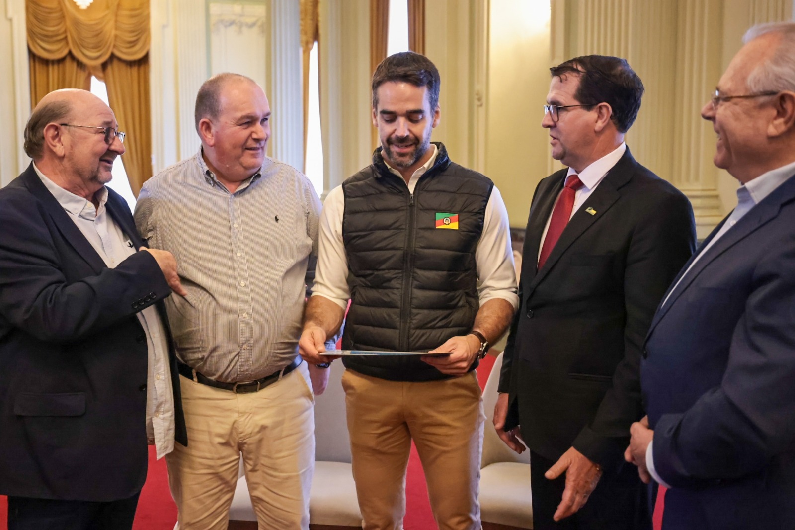 Acompanharam a agenda no Palácio Piratini, o prefeito de Campo Novo, Pedro dos Santos; o deputado estadual, Aloísio Classmann; o secretário de Desenvolvimento Rural, Vilson Covatti; o secretário-adjunto de Desenvolvimento Urbano e Metropolitano, Fernando Classmann; e os assessores parlamentares, Oseias Friski e Jonathan Hoffstetter (Filé).