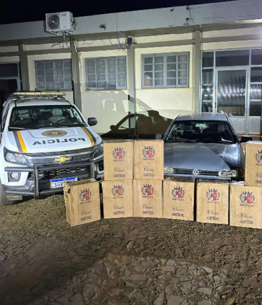 Na data de ontem (05/10), a equipe da Força Tática durante Operação Protetor de Divisas e Fronteiras, voltada à prevenção e repressão de crimes transfronteiriços, realizava diligências e averiguações em portos clandestinos e áreas possivelmente utilizadas para práticas ilícitas. Momento que em um desses locais, foi localizado um veículo VW/Gol, carregado com 16 caixas de cigarros de origem estrangeira, marca Classic.