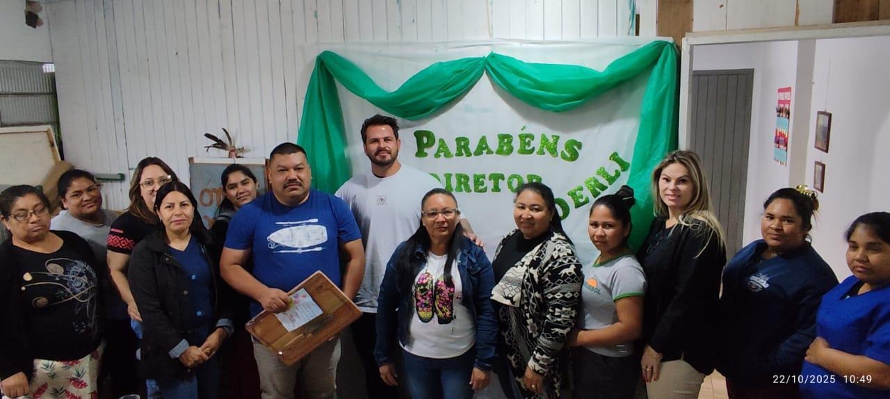 O professor Derli, é o primeiro diretor kaingang do estabelecimento de ensino e comemorou a data com a presença de professores e funcionários da escola.
