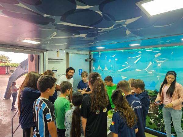 De quarta a sexta-feira, o espaço recebe 18 turmas de escolas do município, que fizeram agendamento prévio, para participar de ações como o cinema interativo no caminhão Tech-Truck, com uso de óculos 3D.