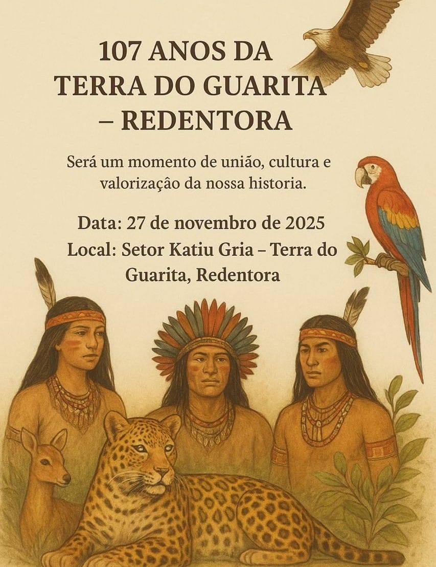 A Terra Indígena do Guarita celebra 107 anos nesta quinta-feira, dia 27, com evento que ocorre no Setor Katiu Gria, pertencente ao município de Redentora.