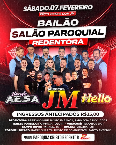 BAILÃO COM TRÊS BANDAS NO SALÃO PAROQUIAL DE REDENTORA