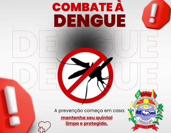 Se apresentar sintomas como febre alta, dor no corpo e manchas vermelhas na pele, procure imediatamente a Unidade Básica de Saúde de Miraguaí. Combater a dengue é responsabilidade de todos. Faça a sua parte.
