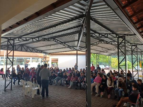 A experiência se complementou com a presença de um adolescente autista, que compartilhou um relato sobre os desafios que enfrenta, suas conquistas e o quanto significa para ele ser acolhido pela escola. Na etapa seguinte, a turma adaptou a obra “Sobre Ser Diferente”. “Cada cena foi construída coletivamente, respeitando o ritmo, as habilidades e as necessidades dos estudantes da educação especial”, detalha Marilise. A turma também fez uma apresentação musical, levando cartazes com palavras que surgiram nas conversas, entre elas ‘respeito’, ‘voz’, ‘acolhimento’, ‘coragem’, ‘diversidade’ e ‘inclusão’. Para reforçar a autoconfiança, a oralidade e a percepção de que a escola é um espaço de voz, a professora instalou um microfone no pátio, durante o intervalo, convidando os estudantes a falar algo positivo que tivesse acontecido naquele dia. “As apresentações mostraram muito mais do que aprendizagem: revelaram transformação, coragem e protagonismo.”